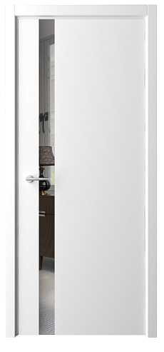 Дверь Геометрия-5 ширина 90 см Белый Эмаль Зеркало грей кромка В цвет полотна в Обь
